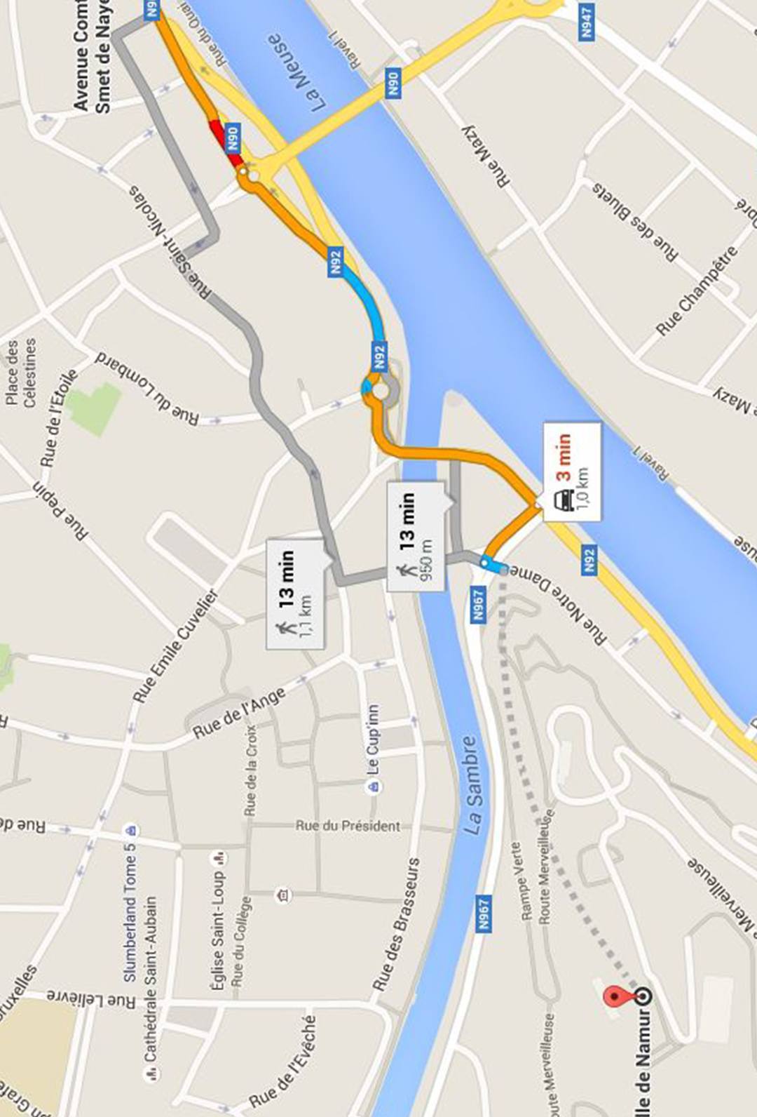 Parc urbain sur deux étages avec un étang et une plaine de jeux pour les enfants.